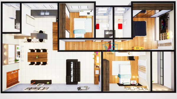 Apartamento novo, primeira habitação com 03 quartos, sendo 01 com suíte, banheiro social, sala de visitas para 02 ambientes, cozinha, área de serviço e 02 vagas de garagem.